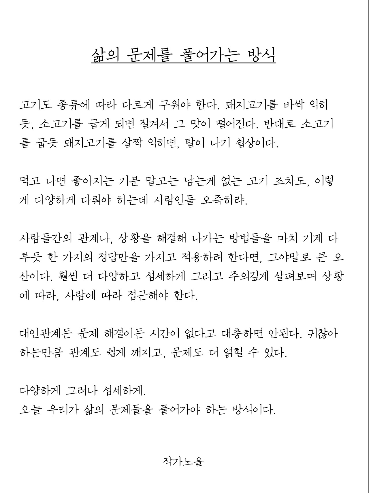 먹고 나면 좋아지는 기분 말고는 남는게 없는 고기 조차도, 이렇게 다양하게 다뤄야 하는데 사람인들 오죽하랴.