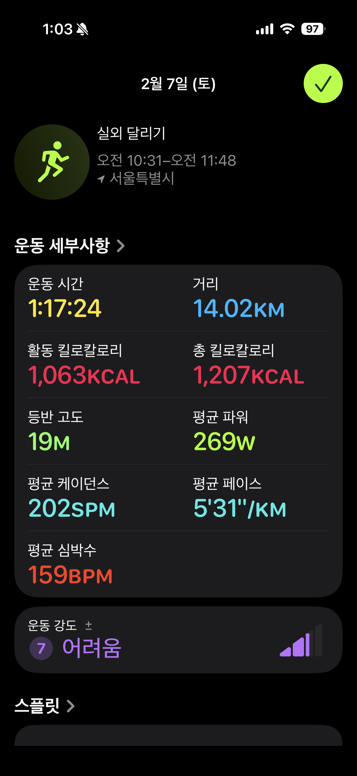 결국 후반부의 '벽'을 넘기 위해서는 지방을 효율적으로 태우는 몸을 만들어야 하는데, 오늘의 14km는 그 엔진을 예열하는 아주 소중한 과정이었다.