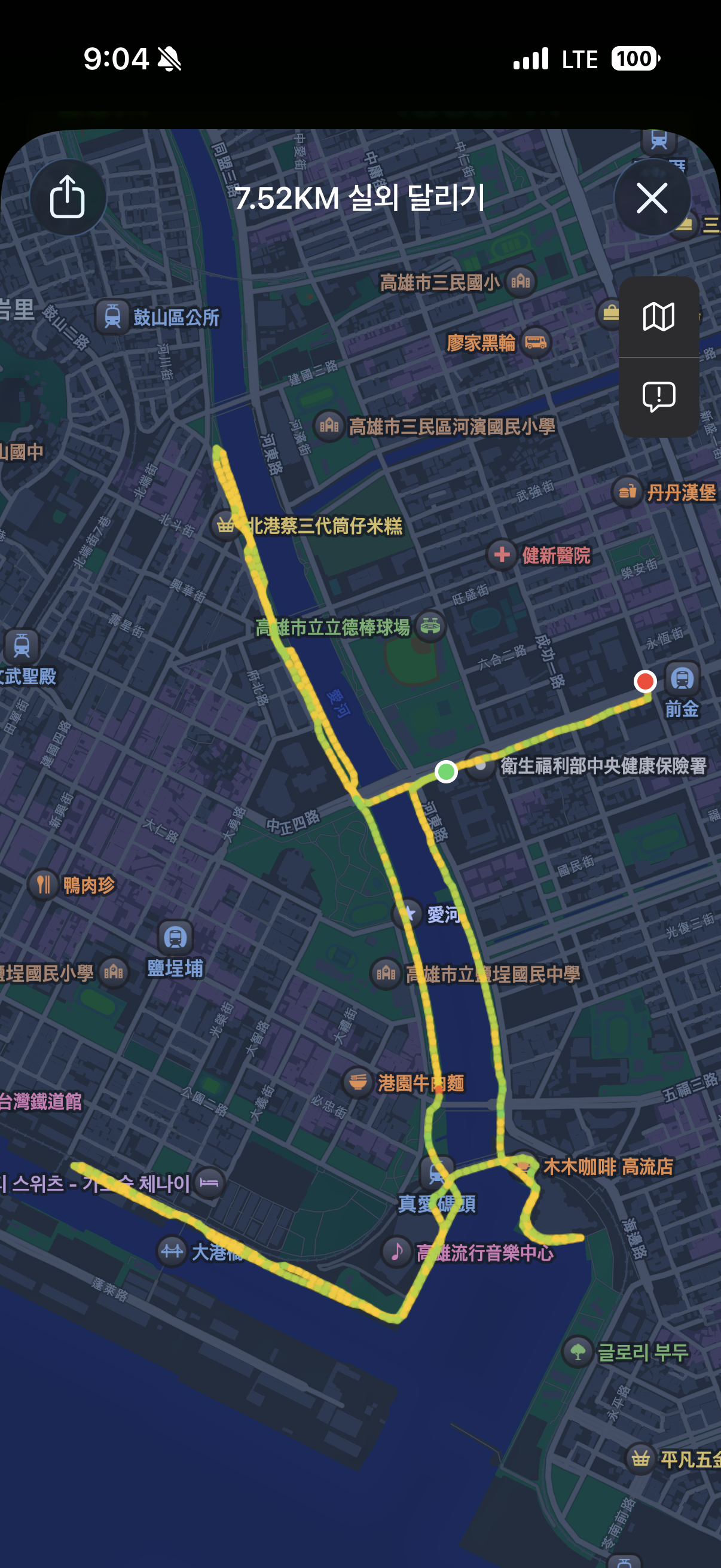 여행 기간 동안 총 4번의 러닝을 했다. 가오슝에서 두 번, 타이베이에서 두 번.