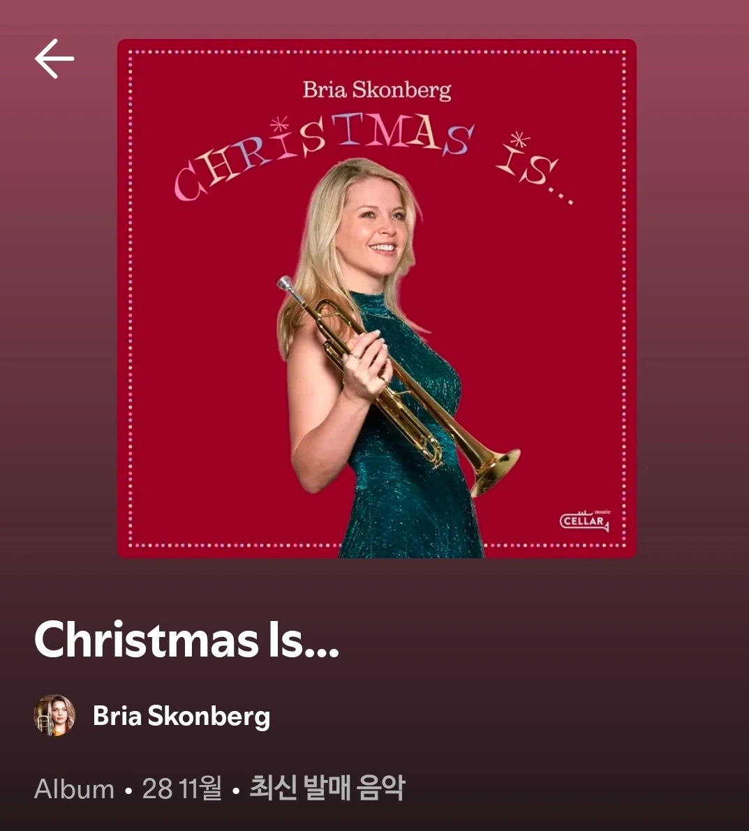 크리스마스 이브를 맞아 해마다 들려오는 똑같은 캐럴 소리에 조금 지루함을 느끼고 계셨을 분들을 위해 뻔하지 않는 크리스마스를 위한 트럼펫, 브리아 스콘버그의 <Chiristmas is...> 앨범을 소개해 보고자 합니다.