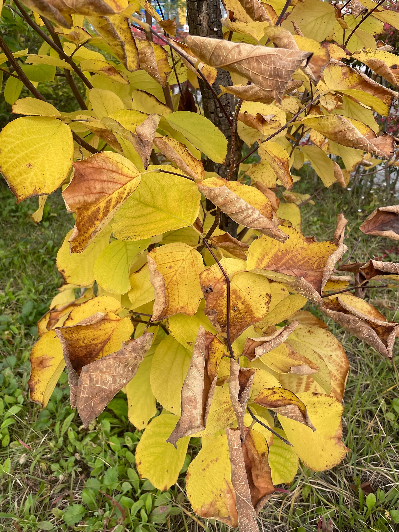 곱게 물들고 있는 쪽동백나무를 들여다봅니다.