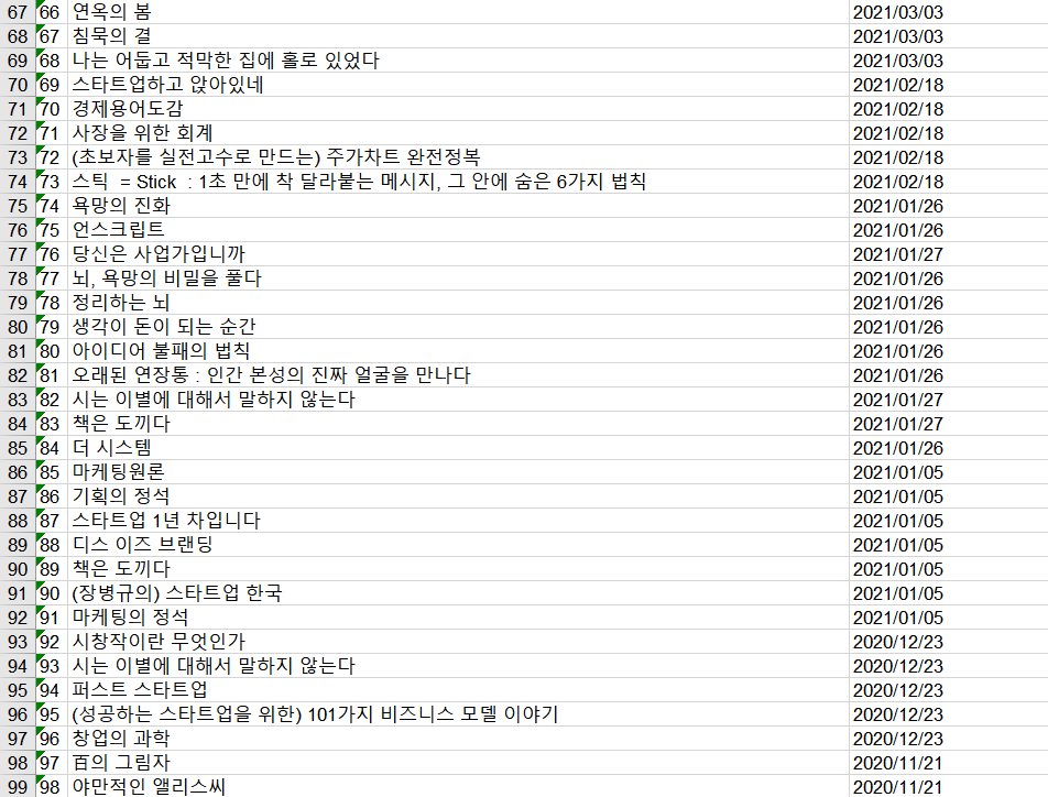 학과 관련된 책도 빌리면서 읽다 보니 1/4은 시집, 소설책, 인문학 책이다. 하지만 그 외의 것은 전부 스타트업, 창업에 관련된 책을 읽었다.