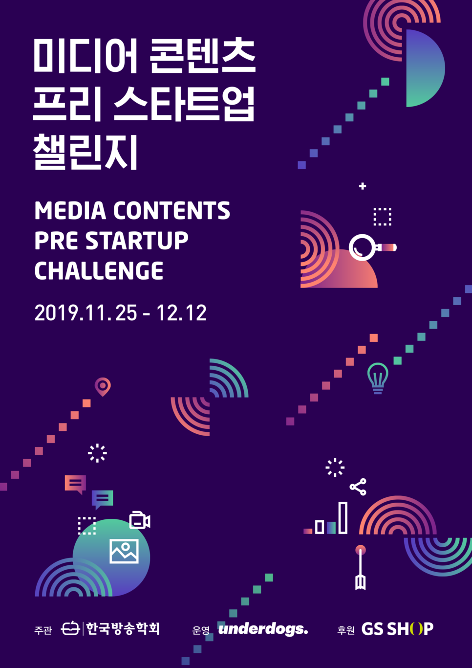 한국방송학회, GS SHOP, 그리고 언더독스가 함께한 <2019 미디어 콘텐츠 프리 스타트업 챌린지>는 빠르게 변화하는 콘텐츠 소비 트렌드에 발맞추어 영상 제작, 매거진, 미디어 플랫폼 등 미디어 관련 콘텐츠를 활용하고자 하는 예비 창업가를 대상으로 진행된 창업교육 입니다.