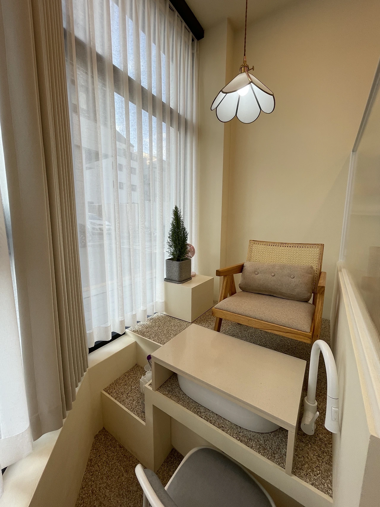 무채색의 벽돌이 차곡차곡 쌓인 도시적인 외관 속에 다채로운 색으로 피어나는 소확행이 숨어있습니다.