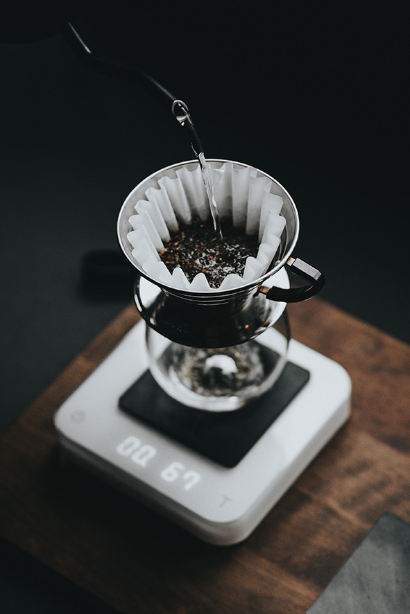 ‘푸어오버’는 정확히 계산된 양의 물을 부어 커피를 추출하는 브루잉 방식이에요. 타이머와 저울을 이용해 추출 시간과 용량을 측정하면서 브루잉하죠. 과학적인 수치를 활용해서 일관적인 맛을 이끌어낸답니다. 여러 명의 바리스타가 일하는 카페에서 균일한 맛을 표현해야 할 때 유용한 방식이죠.