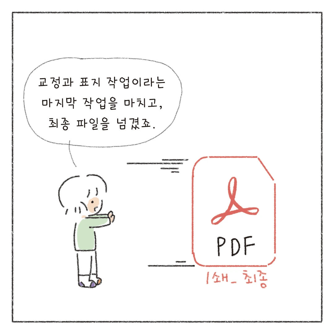 마감 과정에서 저는 교정(화면교, 1교, 2교, 3교)과 표지 일러스트 작업을 함께 했습니다. 작가인 저보다도 편집자님과 디자이너님께서 많은 작업을 하며 치열하게 마감해주셨어요.