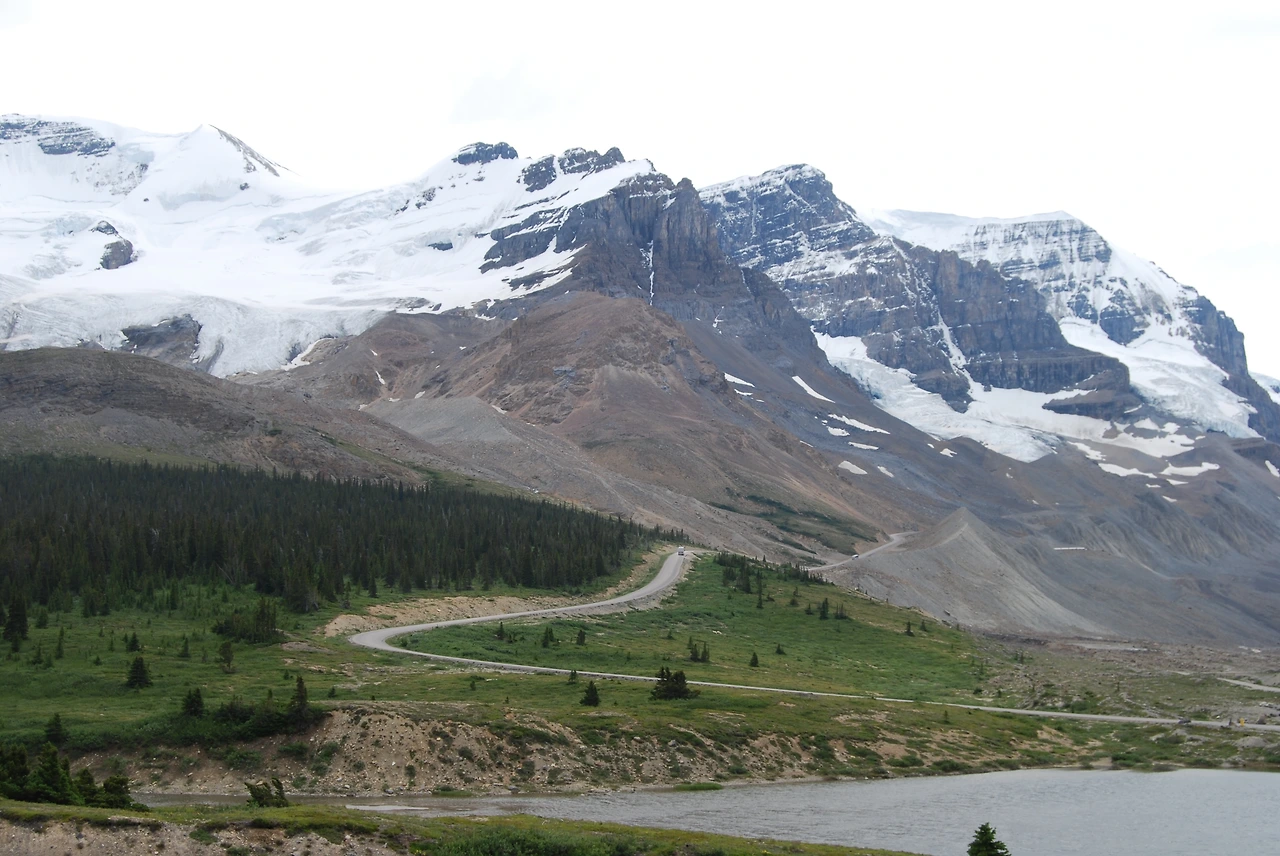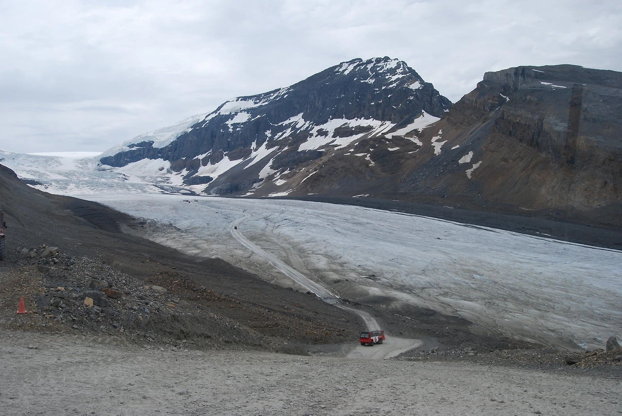 컬럼비아 대빙원 : 컬럼비아 산에서 흘러내린 빙하가 만든 광활한 얼음 평원으로 북반구에서는 북극 다음으로 큰 빙원이다.