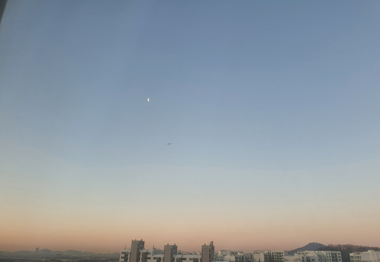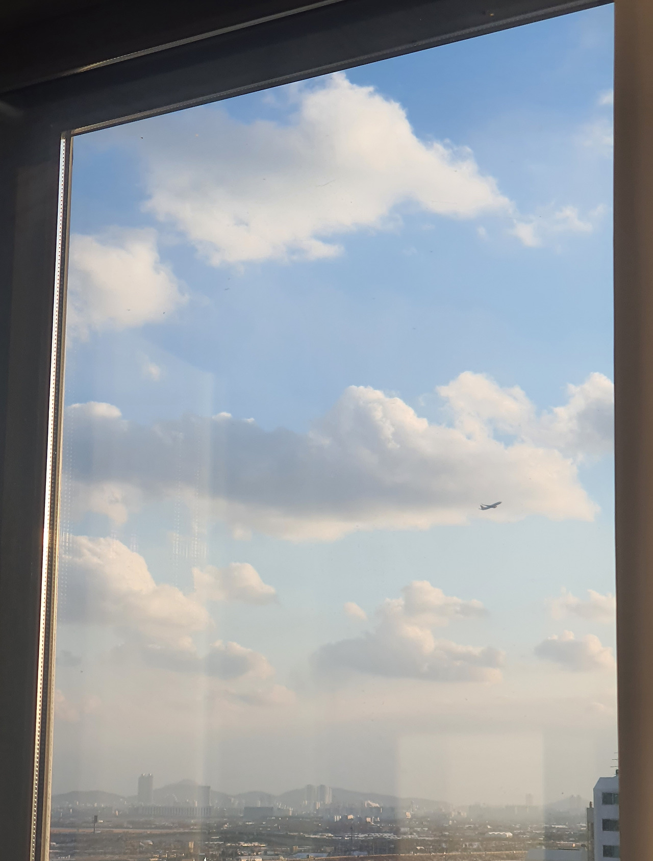 오분마다 비행기가 나는 하늘을 볼 수 있다.