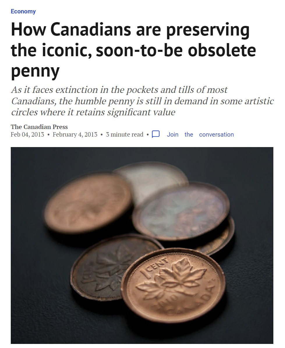 뒷면엔 엘리자베스 2세 여왕의 초상화가 그려진) 1센트는 2012년 5월 4일에 마지막 주조되었고, 2013년 2월 4일부터 유통이 중단되었다.