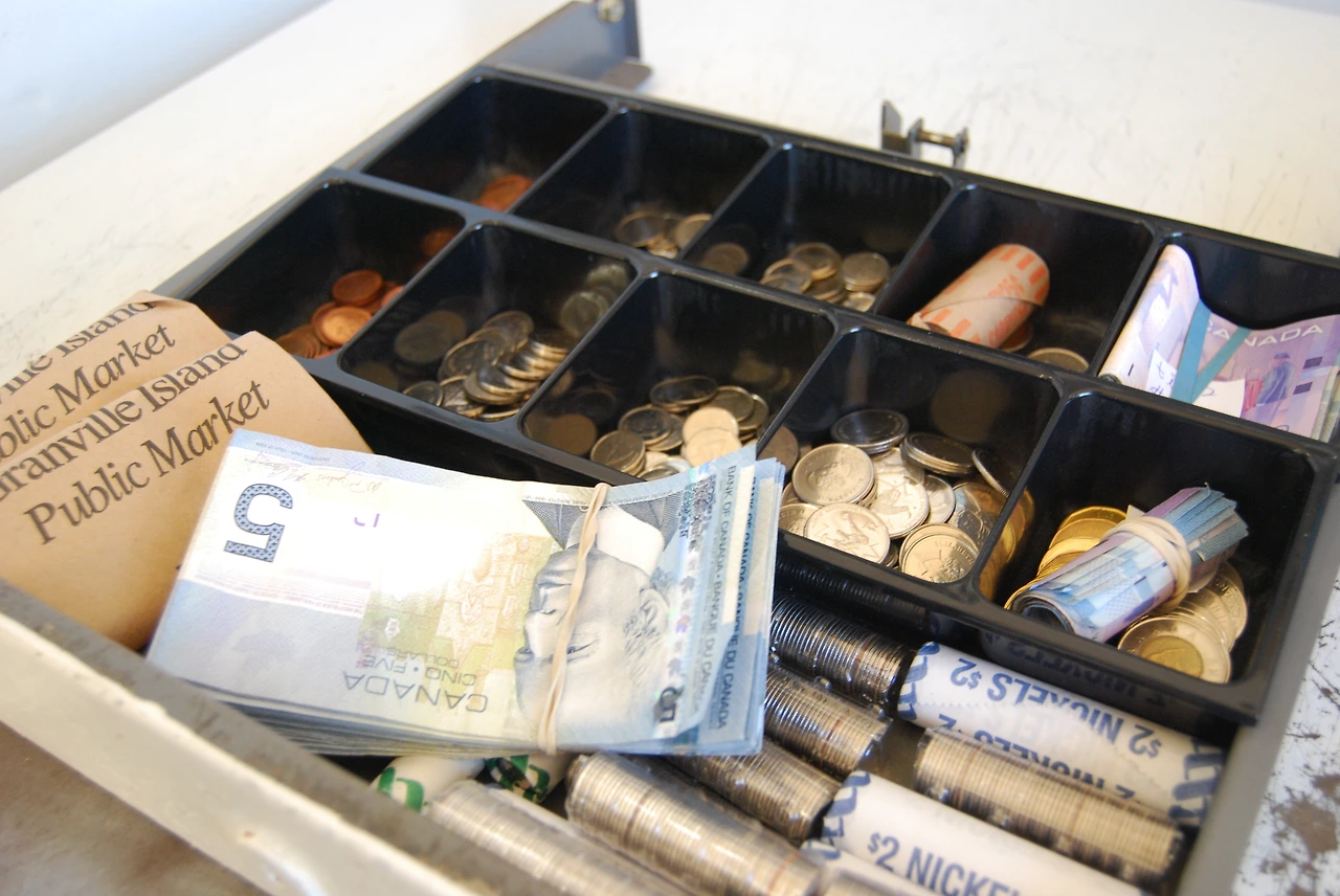 지폐와 동전을 하나하나 정확히 세어 맞춰본다.