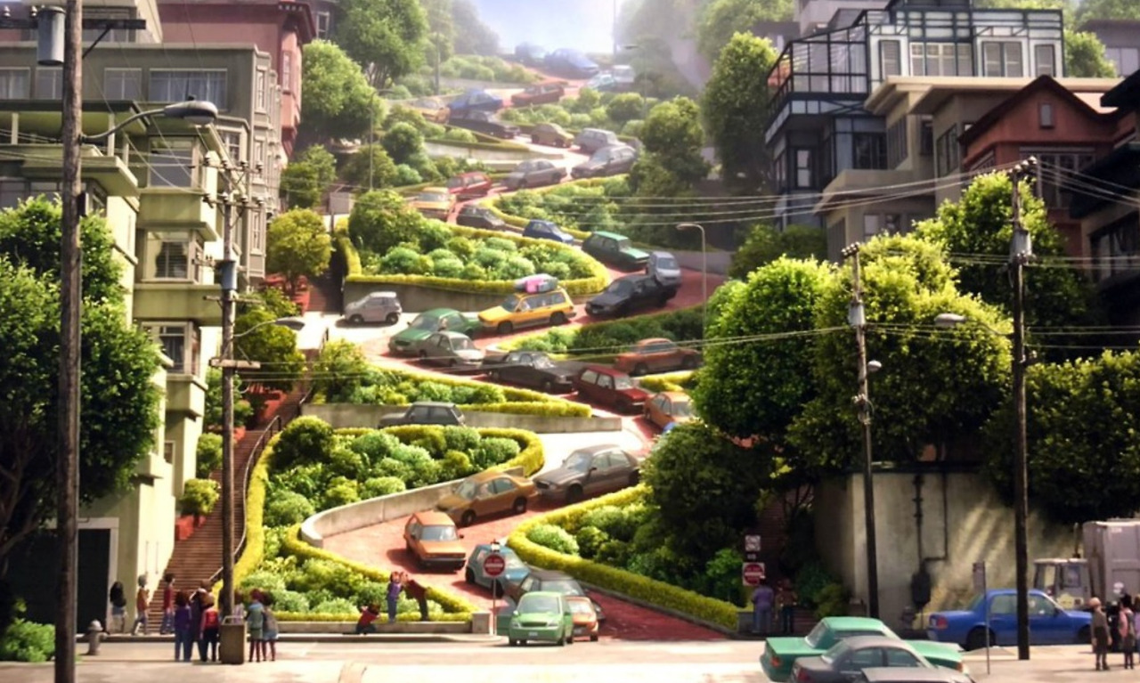 영화와 드라마에서도 즐겨 찾는 길이다. 영화 <인사이드 아웃>에 라일리 가족이 샌프란시스코로 이사 가는 장면. 차 지붕에 짐 가방을 가득 싣고 내려갔던 지그재그 길이다. 양쪽으로 있는 주택들의 모습도 현실 묘사를 잘했다.