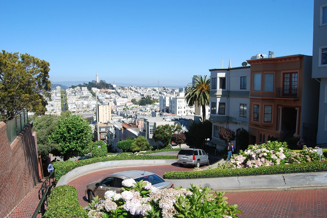 여행자마다 여행한 도시의 상징적인 이미지를 추억할 것이다. 나의 경우, 샌프란시스코 하면 이 날에 본 풍경이 섬네일처럼 첫 장면으로 떠오른다. 브로콜리를 땅에 심어놓은 듯한 울창한 나무길 그리고 장난감 자동차 놀이 같은 구불구불한 꽃길. 두 길을 한눈에 내려다볼 수 있는 지점이 있다.