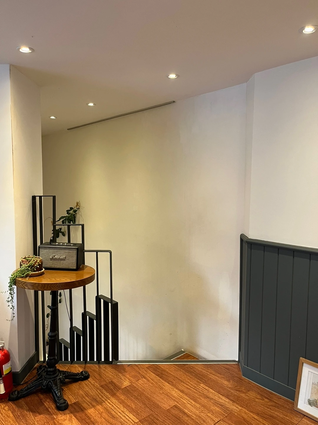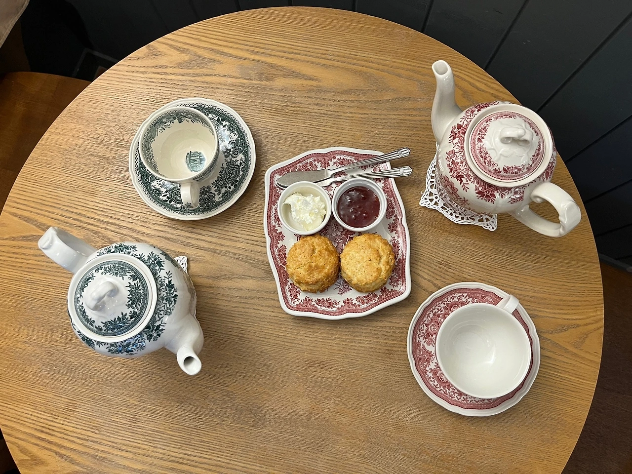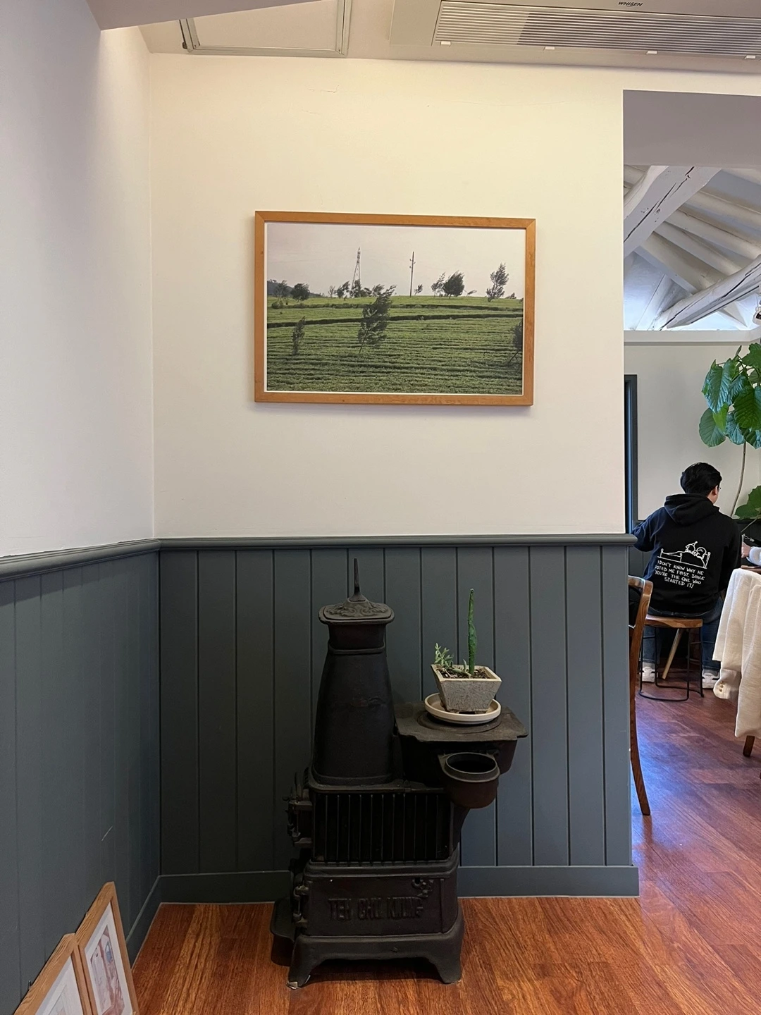 1층엔 창가석과 2인 4인 테이블 두 개가 있다. 벽면 선반에는 홍차 전문점답게 마리아쥬프레르, 포트넘앤메이슨, 로네펠트, 트와이닝스, TWG 등의 브랜드 티가 가지런히 진열되어있고, 책장에는 홍차와 관련된 도서들이 놓여있다. 한층 올라가면 2층은 세 구역으로 나뉘어 조금 더 넉넉한 공간이 나온다. 계단이 다소 가파라서 트레이를 들고 올라갈 때 조심히 집중하게 된다.