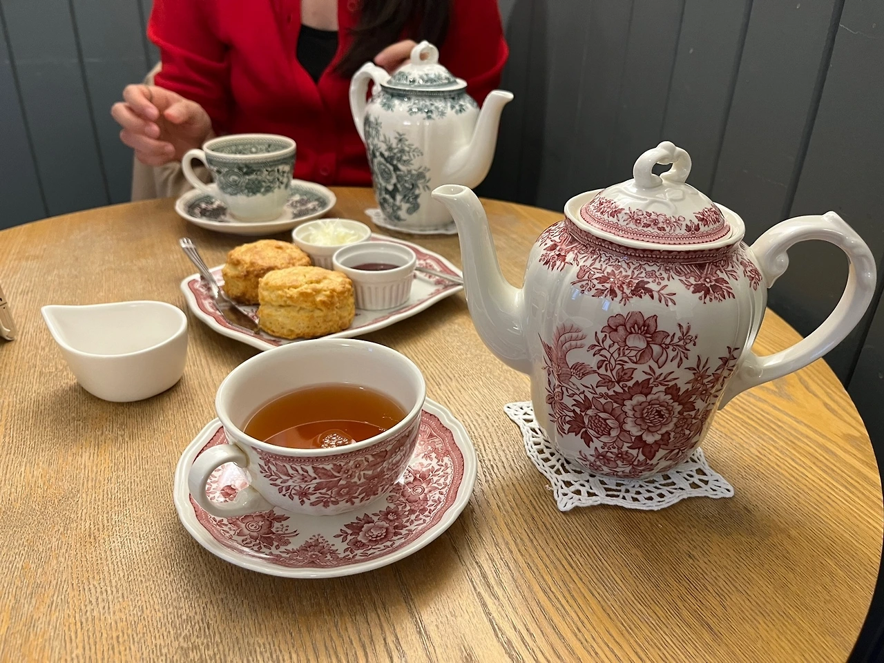 밀크티 단품도 좋지만 스콘 맛집이니 스콘과 함께 나오는 '런던 클래식 밀크티 세트'를 추천한다. 진한 홍차에 우유를 더하는 영국식 밀크티의 맛과 스콘까지 한 테이블에서 경험할 수 있는 구성이다. 빈티지 찻잔으로 화려한 찻자리를 즐길 수 있다. 처음부터 우유를 붓지 않고, 스트레이트로 먼저 음미한 후에 우유를 붓는다. 셀프로 만들어 마시는 밀크티라 양 조절이 관건이다. 취향에 맞게 우유와 설탕을 조절해서 마시면 된다. 홍차에 우유를 쪼르르 부을 때 홍차와 우유가 섞이는 수색이 보는 즐거움을 더한다. 밀크티가 주력 메뉴인만큼 우유 소비량이 클 텐데, 이곳은 환경을 생각하며 우유팩 다시 쓰기에 동참하고 있다고 한다.