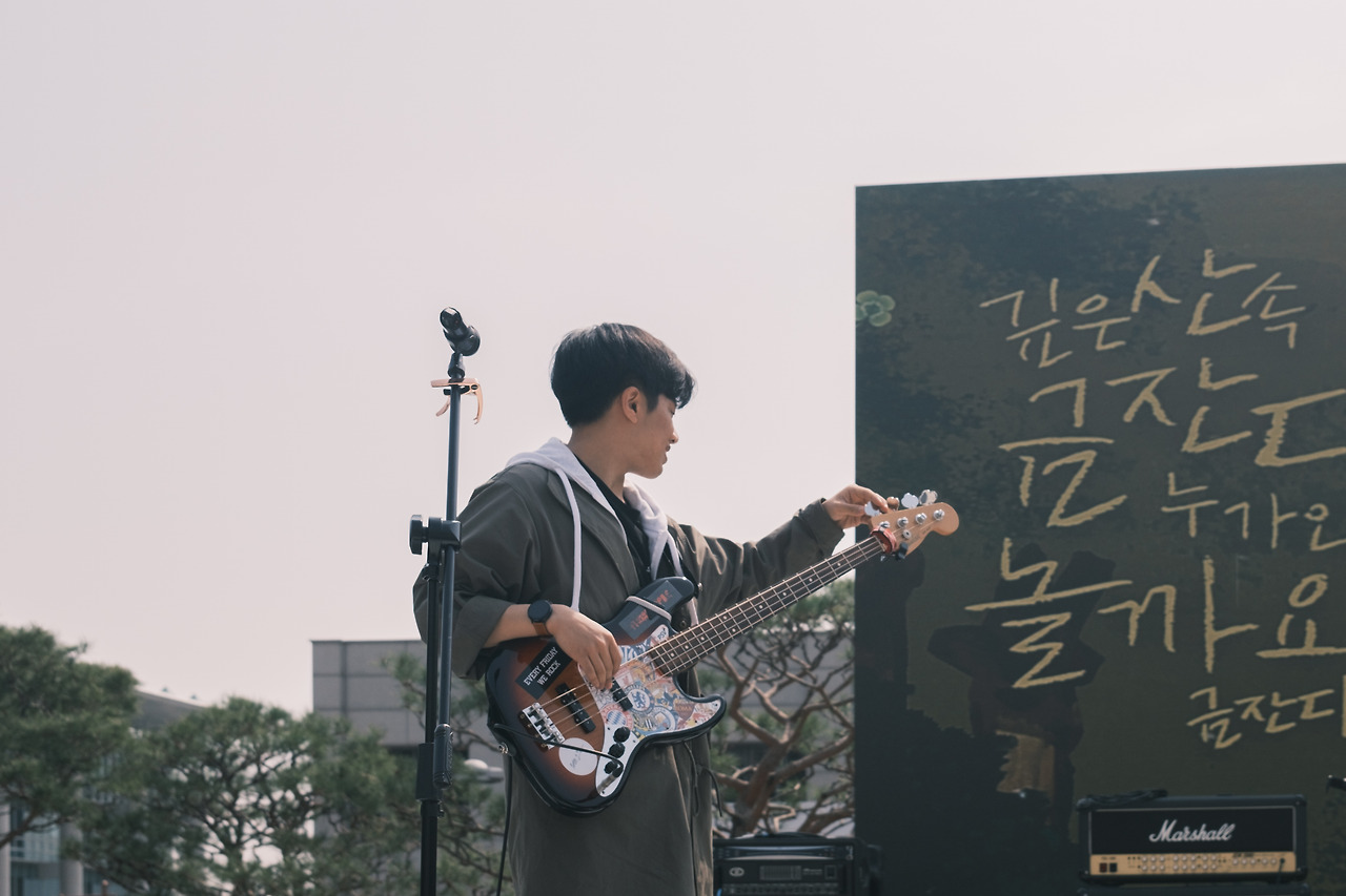 근데, 그때 그 공연을 준비하는 3주라는 기간이 제 밴드 인생에서 제일 행복했던 3주였던 거 같아요. 방학에도 시간을 내서 공연을 하려고 하는 친구들이 모여서, 여유롭게 또 열정적으로 공연 준비를 하니까 이게 너무 좋고, 다른 팀 합주에 평반을 하러 들어갔을 때도 피드백을 줘야겠다 하는 압박도 없이 그저 즐겁기만 했어요. 애들 실력이 1학기에 비해서 성장한 걸 보는 것도 좋고, 제 합주를 할 때도 서로 자유롭게 의견 공유하면서 공연을 준비하는 게 진짜 너무 재밌었어요.