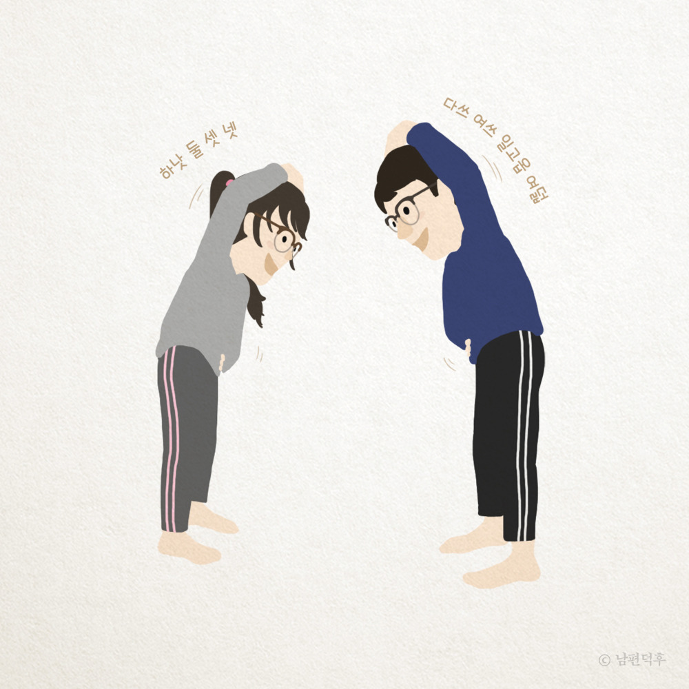 계속 구령을 붙이면서 한번은 남편이 하는 동작을 따라 하고
