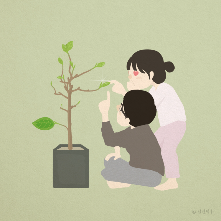 그날부터 나무에게 물을 주고 영양제를 꽂아주고 매일매일 말을 걸어준 남편의 말을 나무도 들은 걸까..?