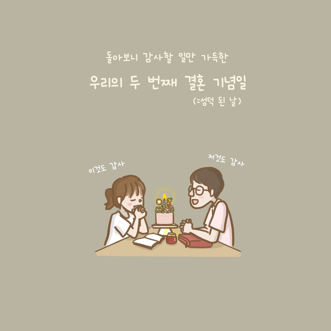 여느 때처럼 초를 켜놓고 예배를 드리며 지난 2년을 돌아보니 감사한 일들만 한가득인 두 번째 결혼 기념일.