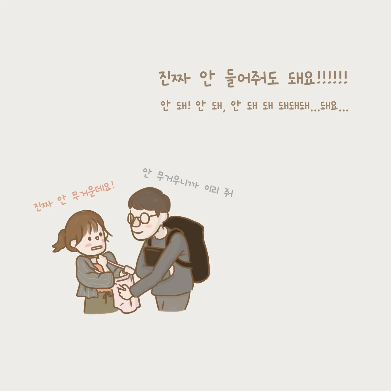 아이고 증말 든 것도 없는 가방을 꼭 들어주신다고 하네. 오늘은 몸이 안 좋아서 못 이기는 척 가방을 부탁드려야겠다.ㅠㅠ