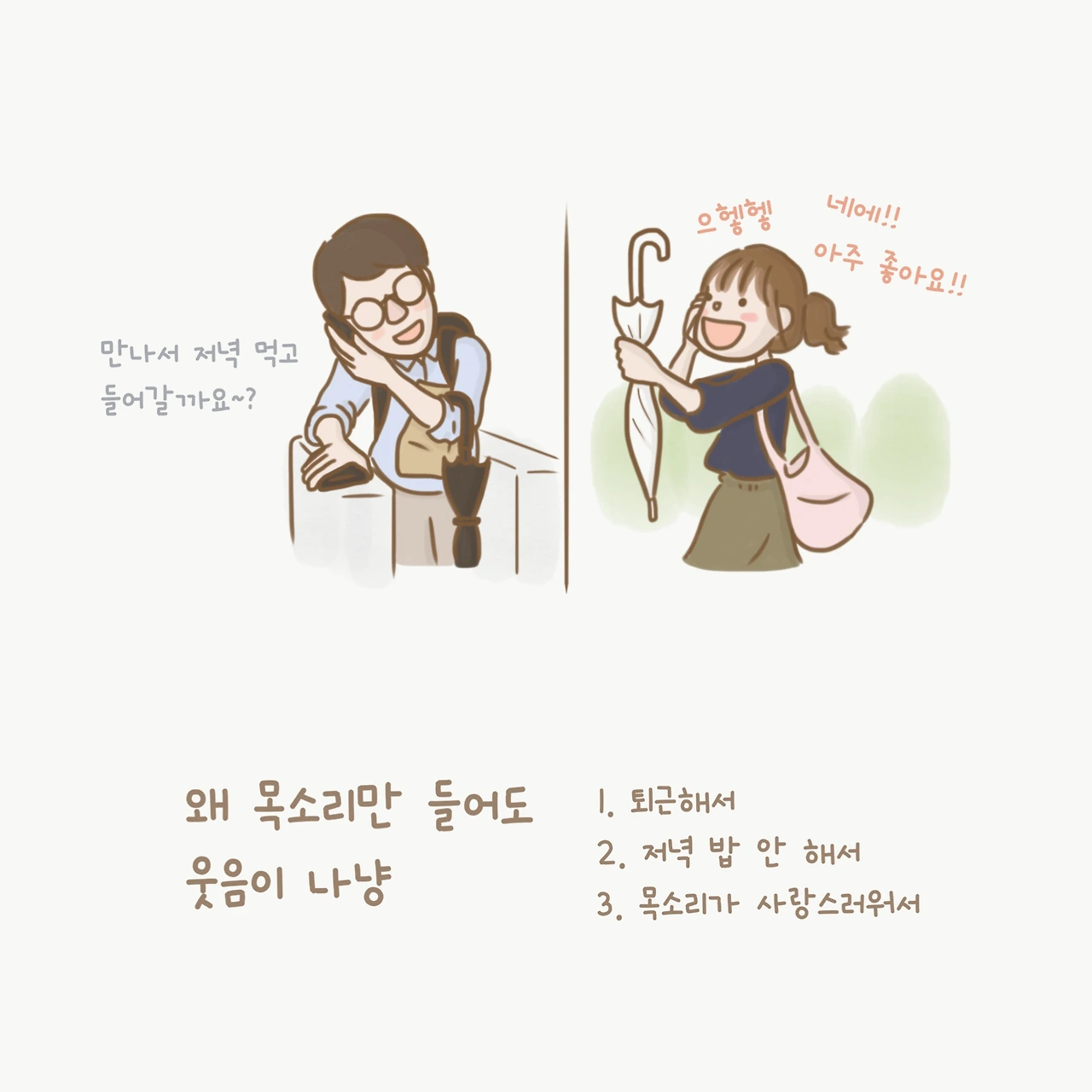 퇴근길 전화 한 통에 광대가 바로 승천하네? 목소리가 너무 귀엽고 사랑스러우셔!!!! 1분 전까지만 해도 회사에서 종일 썩은 표정으로 있었는데... 회사 식구들 죄송합니다...제 안에 이런 함박웃음이 숨겨져 있는 줄은 저도 몰랐어요....ㅋㅋㅋㅋㅋㅋㅋㅋ