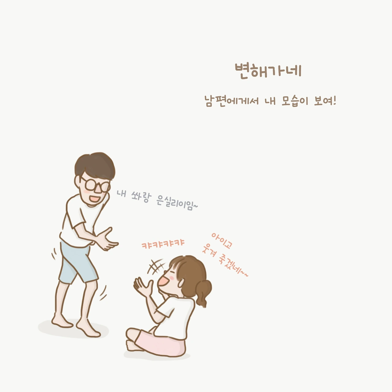 그러고 보니 흥부자인 나와는 반대로 흥빈곤계층이었던 종수님도 많이 변하셨다! 농담이라고는 1도 안 하셨는데, 결혼하고는 순간순간 하시는 웃긴 말과 행동들이 나를 빵 터지게 한다.