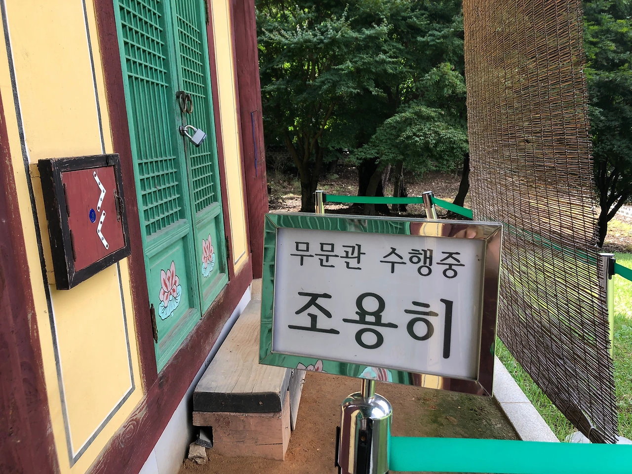 무문관 체험이 갑사에만 있다는 것은 여기 와서야 알았다. 폐관 수행을 원칙으로 하는 무문관은 하루 한 끼를 하고 세상과 단절한 상태로 마음의 수행을 하는 프로그램이다. 예불을 읊는 모습에서 예사롭지 않았던 반백발의 여성분이 바로 무문관 수행을 신청한 체험자였다. 그분은 휴대폰을 반납했고 스님은 방문을 잠갔다.