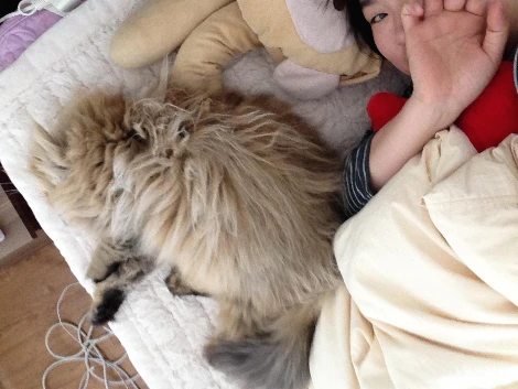 특히 궁둥이 털이 길어지면 간혹 볼일 후에 맛동산 반 토막만 한 응가를 털에 붙여서 대롱대롱 달고 다닐 때가 있다. 너무 웃기기도 하고 귀엽다. 그 상태로 이불에 앉기라도 하면 일이 커지기 때문에 얼른 발견하는 게 중요하다. 어떤 날은 소파에 같이 누워있다가 낯익은 응가의 향기에 벌떡 일어날 때도 있었다.