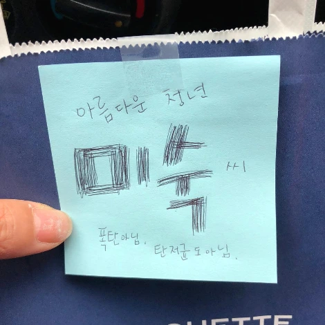 택배비 아끼면서 대면하지 않고 부담 없는 선물을 전달하는 방법을 고민하던 중 아파트 문고리에 걸오 놓고 오는 생각이 떠올랐다. 친구들 아파트 동호수를 평소에 알아놔서 다행이었다. 마침 오늘이 연휴 전날이라 다들 일찍 퇴근할지도 모르니 서둘러야 했다. 손 편지를 씩씩하고도 짧게 써서 선물과 같이 담았다. 동선을 정해서 첫 번째 친구 아파트에 도착했다.