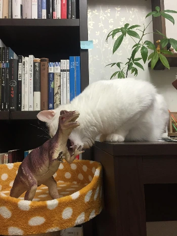 한번 물면 놓지 않는 승냥이 같은 이빨로 다이노의 목덜미를 단숨에...... 앙~