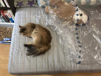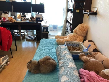 고양이 소변은 정말 냄새가 고약하다. 일반세제에다가 표백 살균세제를 함께 사용해야 한다. 어느 날엔가는 고양이가 컴퓨터 의자에 오줌테러를 하는 사태가 발생했다. 침대에만 온 신경을 쓰는 사이에 고양이는 의자를 노렸던 것이다. 버리고 또 사기엔 침대로 충분하지 않을까.