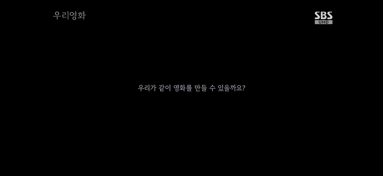 생소한 걸 선호하지 않는 대중매체에서 이런 시도를 했다니. 갈수록 어려워지는 방송국 제작 환경에서 낯설고 어려울 수도 있는 연출을 가미하다니. <우리영화> 혹은 '우리 영화'를 향한 등장 인물들 혹은 실제 제작진의 밀도를 어림 짐작해보며 괜히 응원하고 싶어지는 것이다.