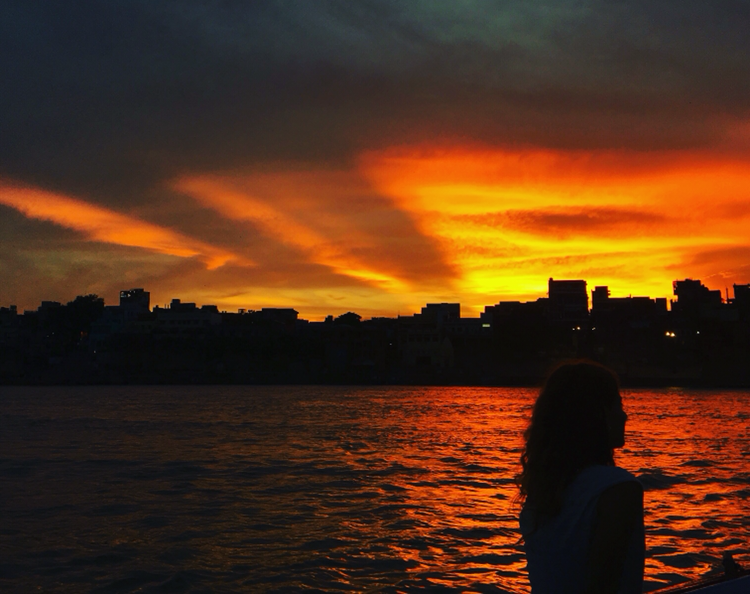 17년 8월에 바라나시 보트투어 하던 날 나는 그녀의 뒷 모습을 담았다. 조용히 휴대폰을 들고 붉게 타오르는 가트를 배경으로 담고 싶었다.