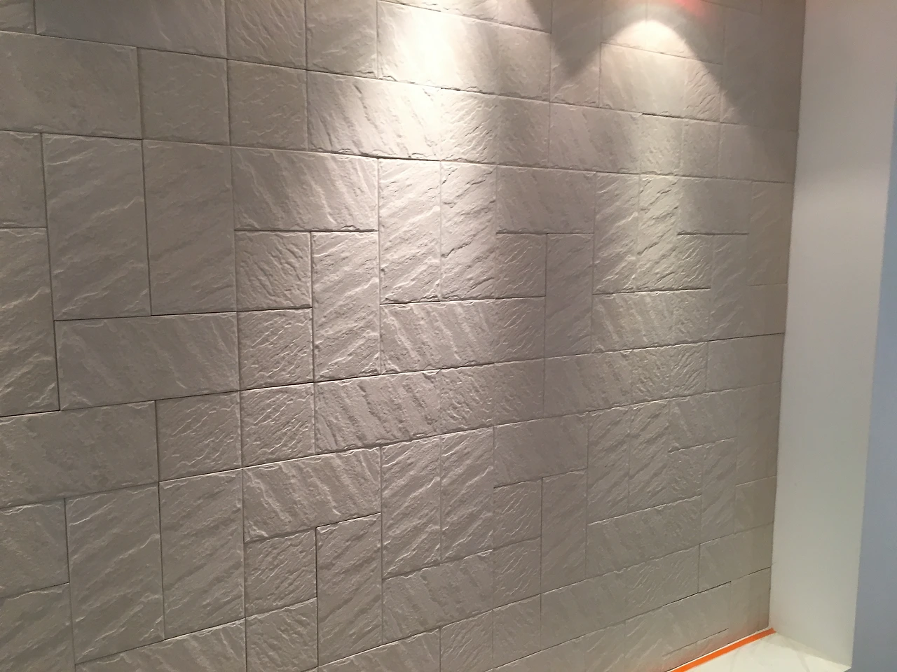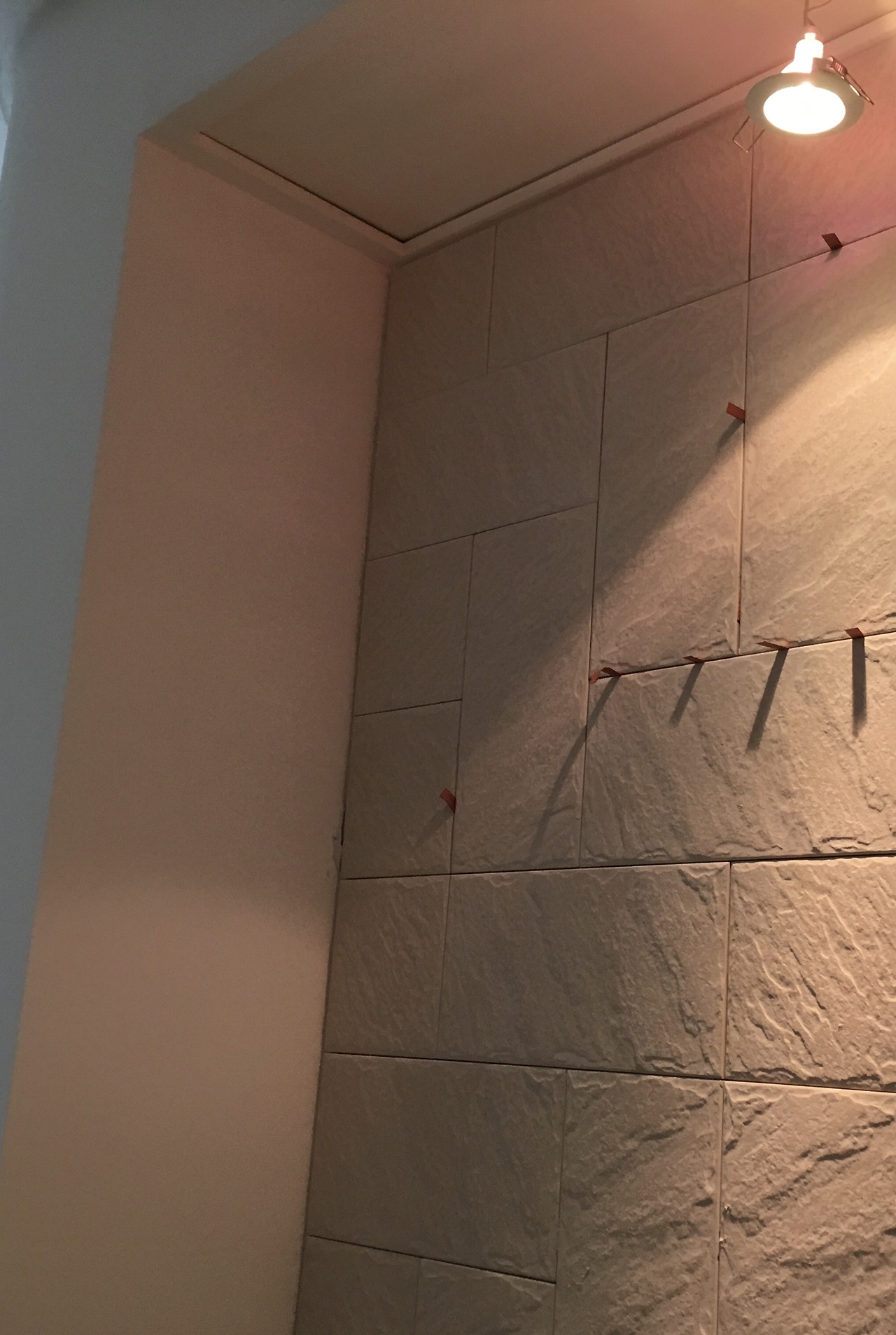 줄눈 간격을 거의 없애고 붙이긴 했지만 사람이 하는 일이라 기계처럼 일정하진 않다.