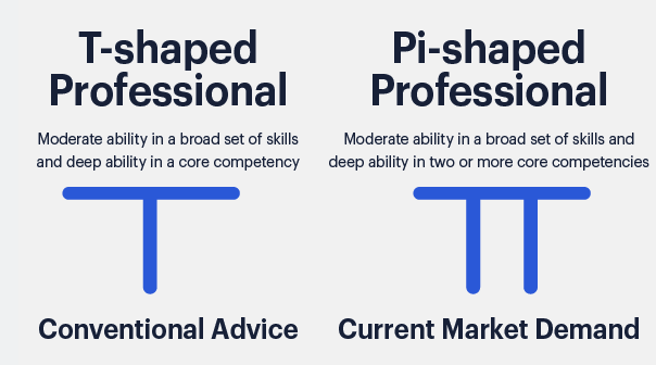 T자형 인간은 한 가지 분야에 깊은 전문성을 가지고, 다른 영역과 연결될 수 있는 얕은 지식을 가진 사람이다. 반면, π(파이)형 인간은 두 가지 이상의 전문성을 깊게 갖추고, 이를 융합하는 능력까지 요구받는다.