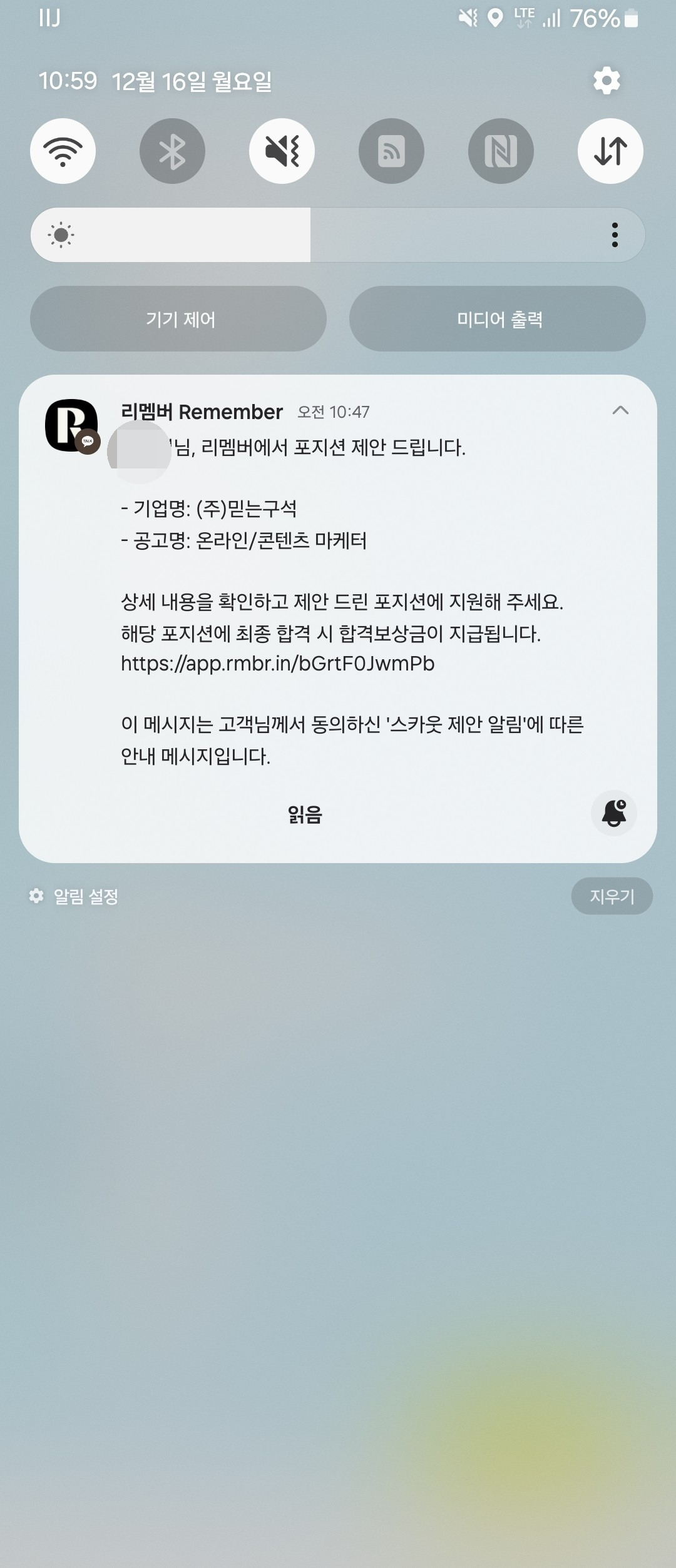 ‘헤드헌터로부터 연락이 왔다’는 듯한 알림에