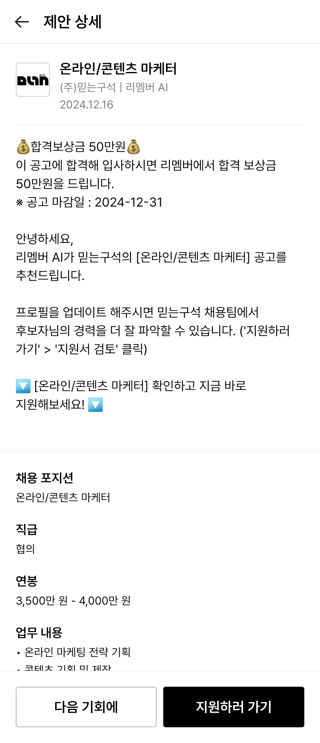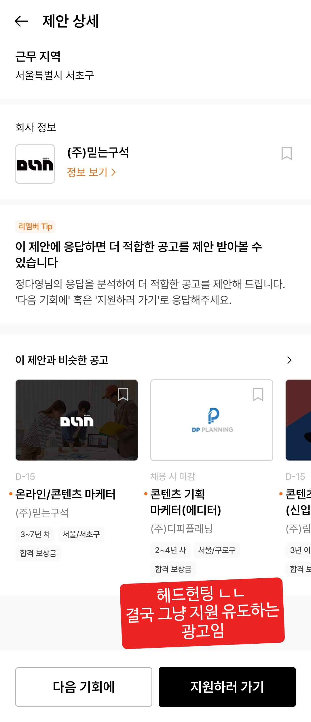 스카웃 제안인 줄 알고 [지원하기]버튼을 눌렀지만,