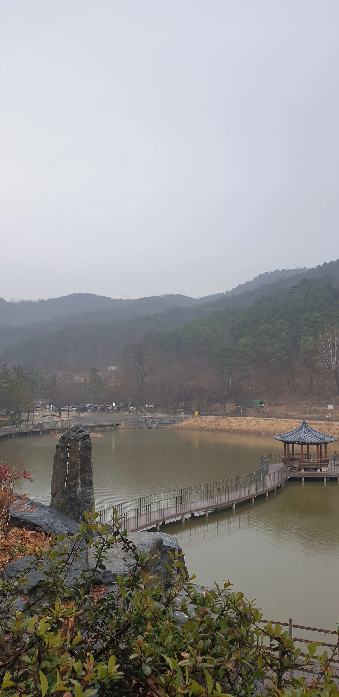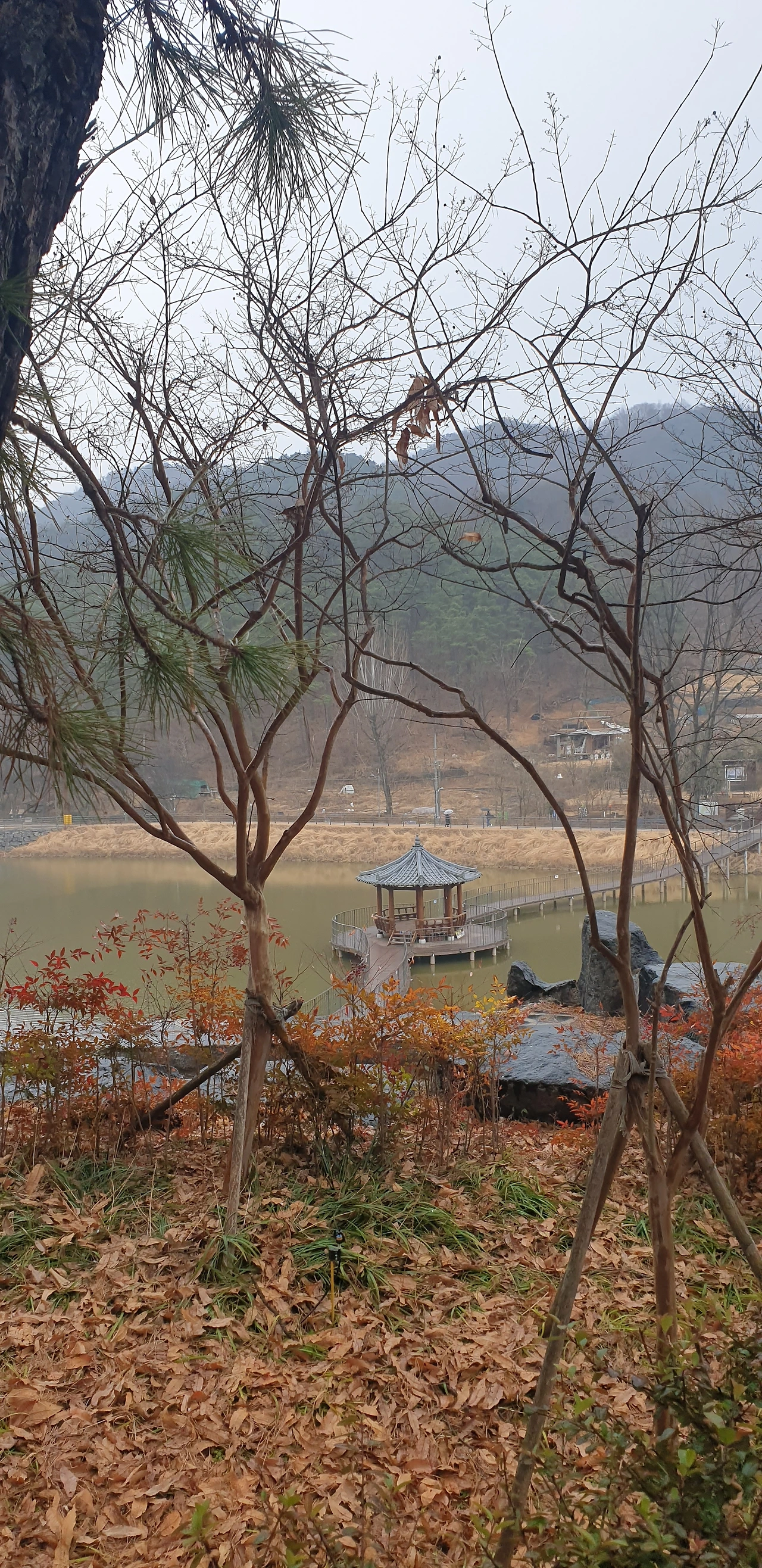 무념무상으로 비 내리는 공원을 보며 산책을 하고 있는데