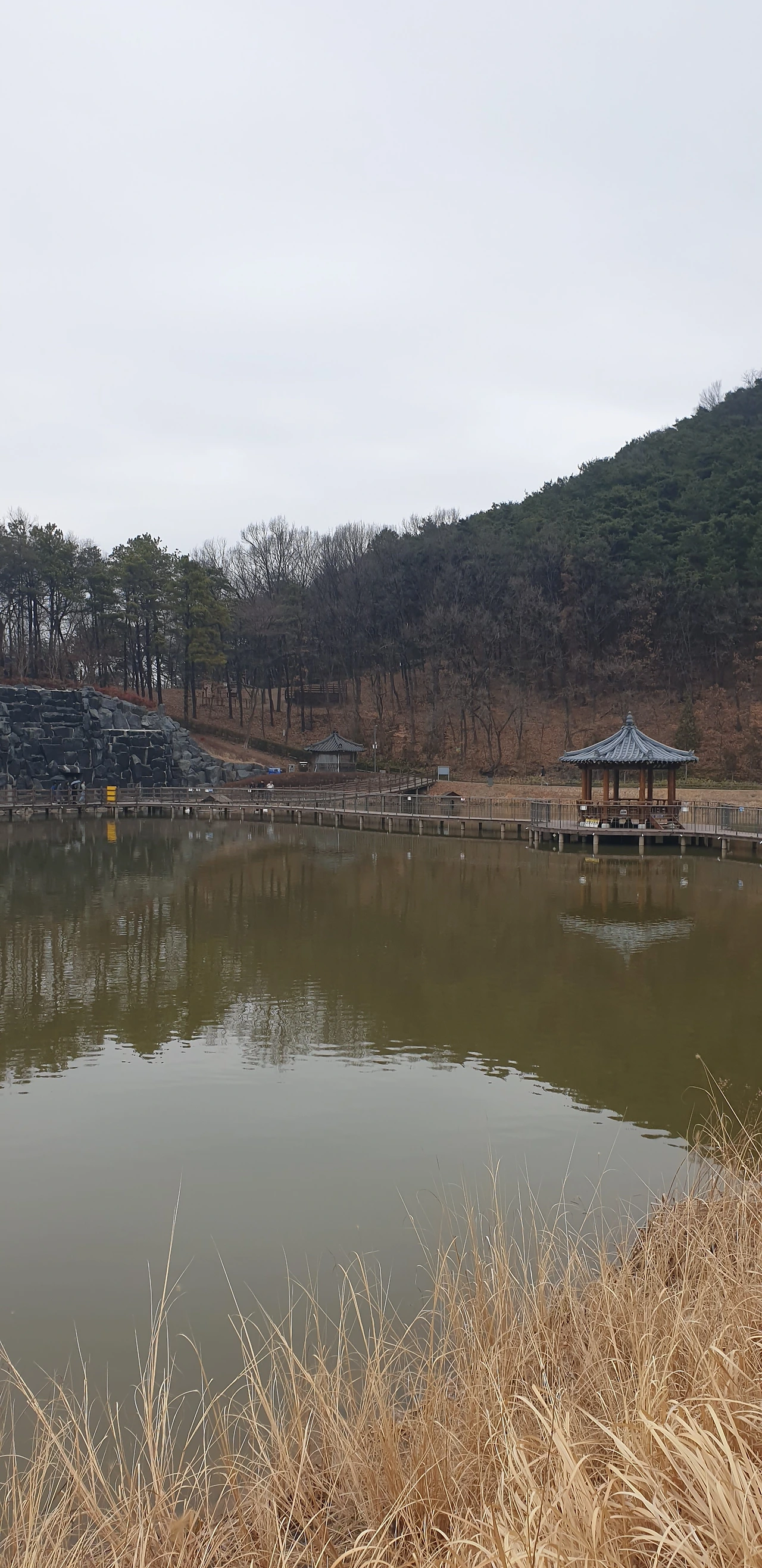 태극기를 철수시키고 장우산을 챙겨 근처 공원으로 나섰다.