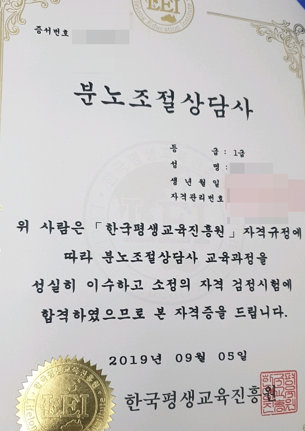 분노조절 상담사 1급 자격증,