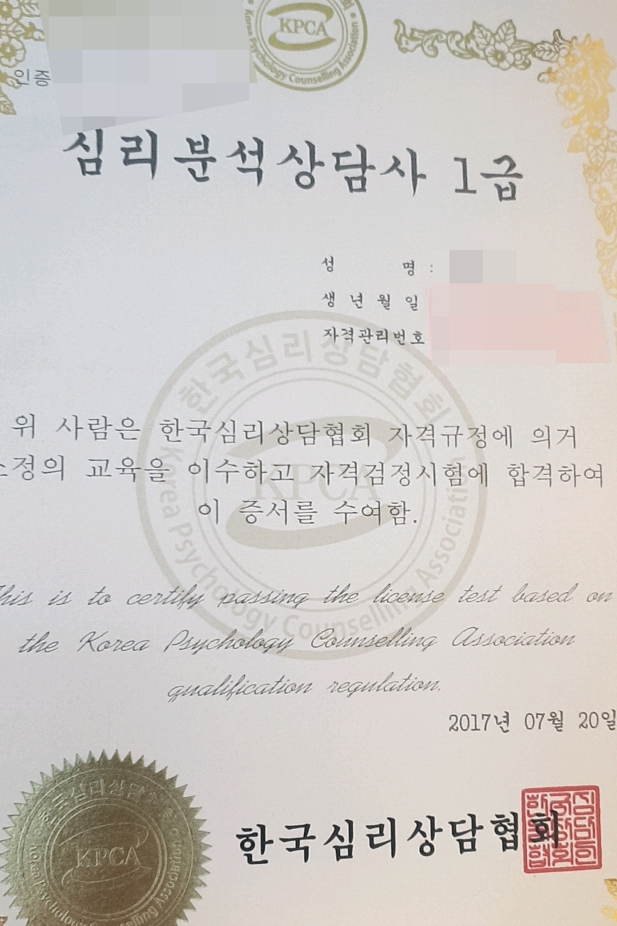 심리분석상담사 1급 자격증,