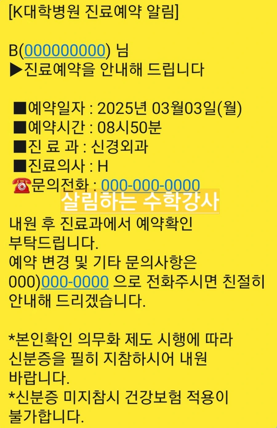 현미래 의사 선생님께서 월요일로 진료 예약을 잡아서 문자를 준다고 하시더니 그 문자가 온