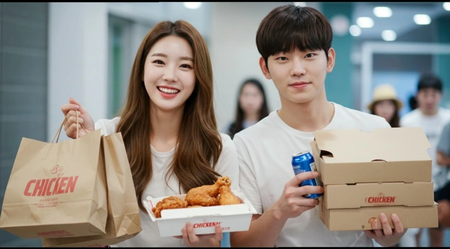 "야~ 다 와있었네~~ 우와....씨~ 사람이 터져 나간다~ 터져 나가! 미래가 1인 1닭 해야 된다 해서. 자~~ 얼른 한 마리씩 받아~~"