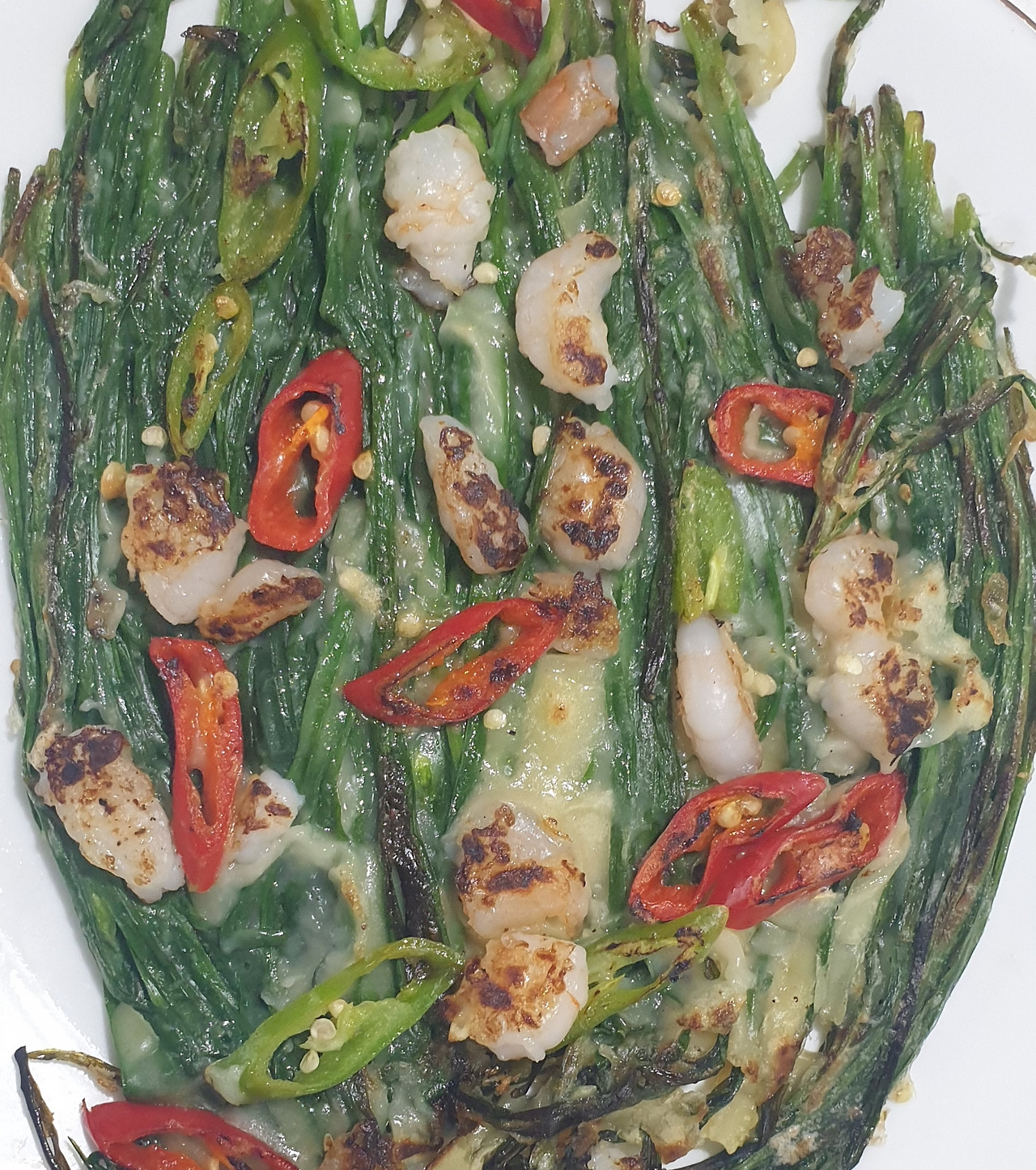 뜨거운 부추전 익는 냄새에