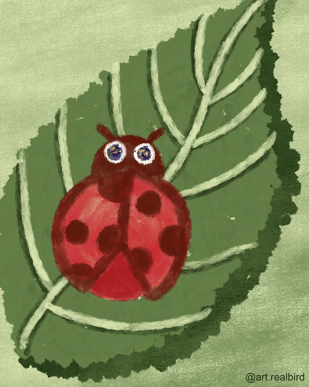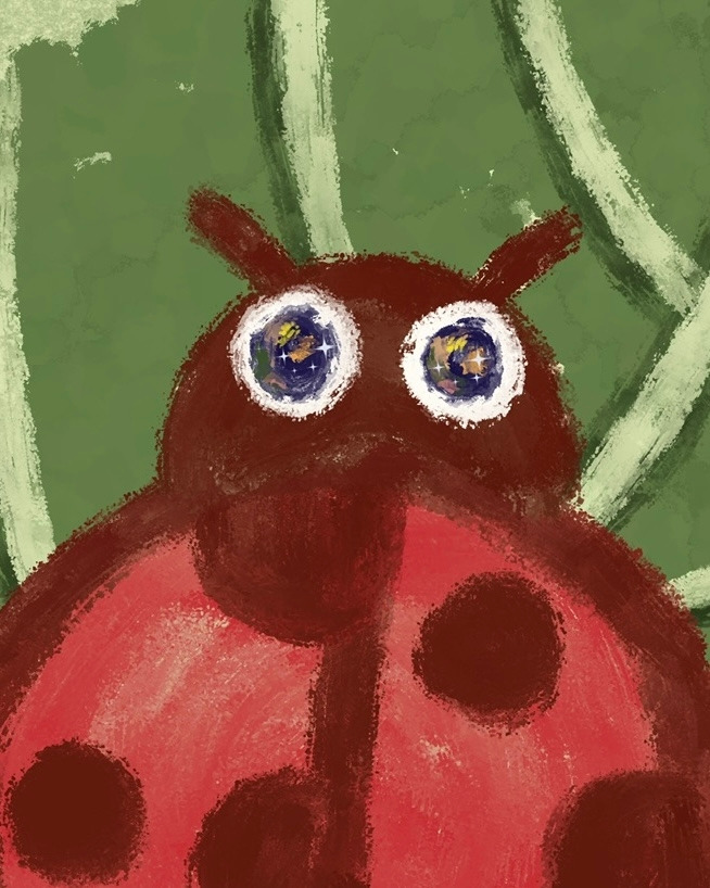 아무런 꿈도 꾸지 않았다. 그게 왠지 아쉬워서 꿈이라도 꾼 척해본다. 아직 다가오지 않은 행운일지라도, 내가 나서서 먼저 잡고 싶은 마음이 무당벌레 무늬처럼 선명하다. 바라는 행운의 크기만큼 큰 무당벌레를 그린다.