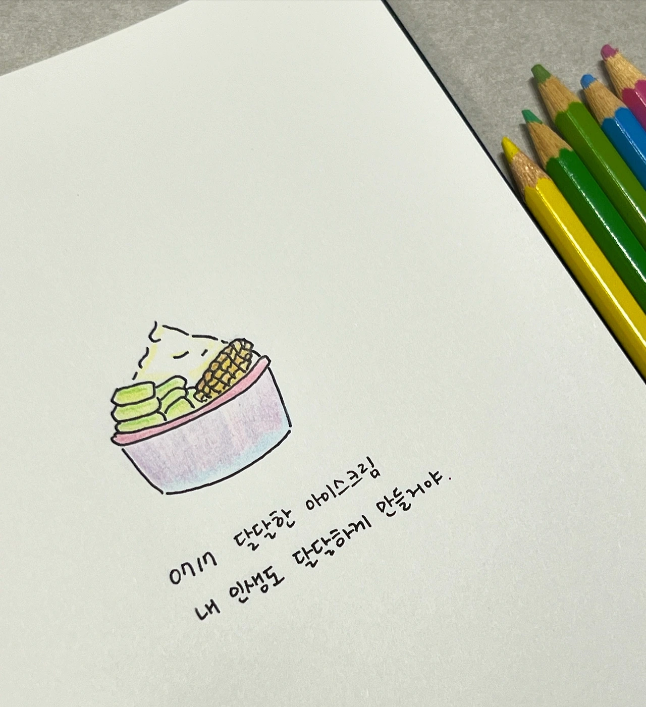 아이스크림을 먹다가 문득 내 인생도 달달하게 만들어야지 하고 다짐한다. 더 자주 웃고, 더 다정한 말을 건네야지. 잘 안 되는 날에도 그렇게 할 수 있도록 애써야지.