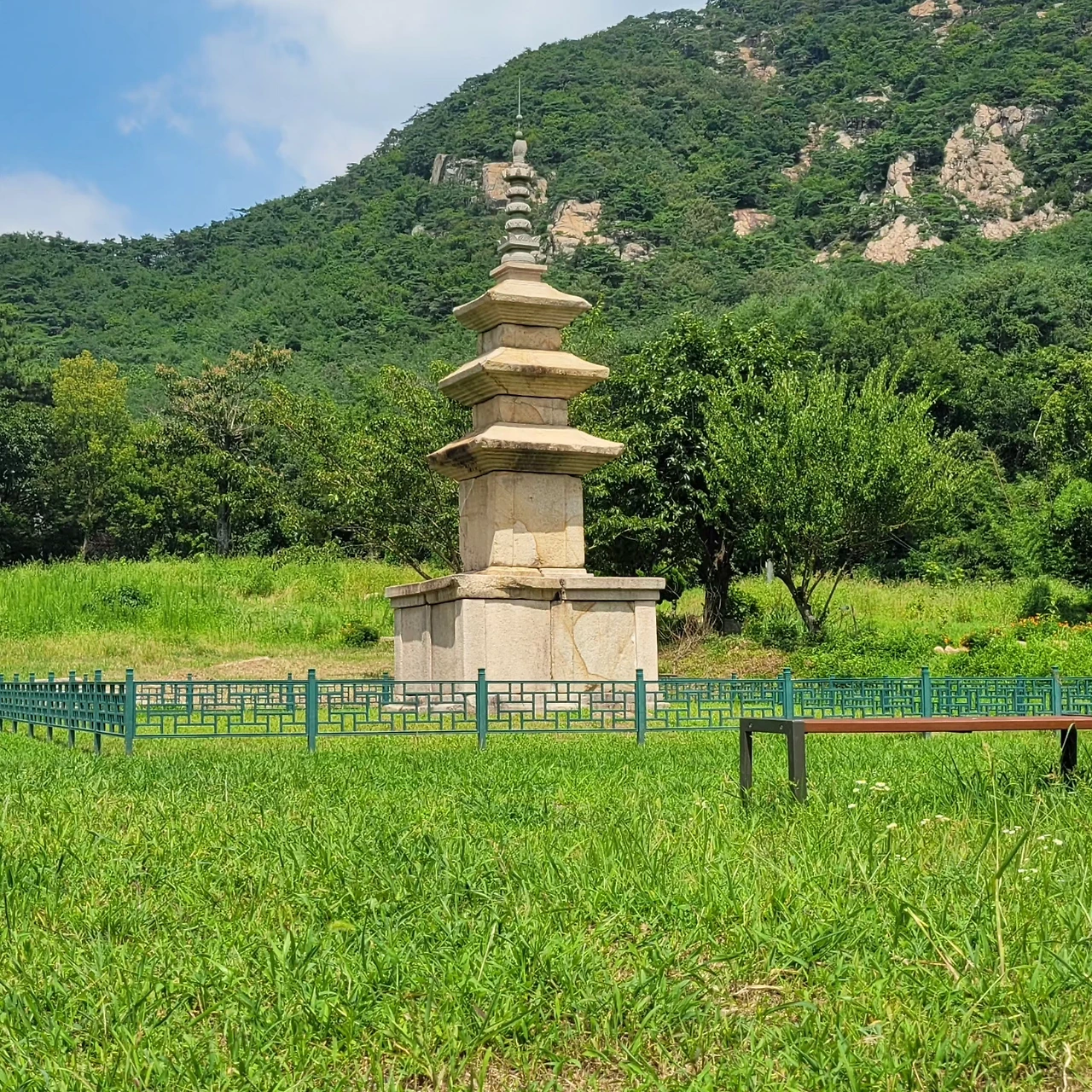석가탑과 흡사한 삼층석탑이 서 있었다. 늘씬하고 균형잡힌 바디였다. 안타깝게도 상단부분은 새로 만들어져 올려놓았다....