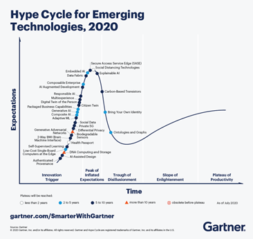 [그림 1] 기술에 대한 기대와 현실 수준을 확인할 수 있는 가트너 기술 사이클 그렇다면 매년 세계적인 석학들과 글로벌 IT기업 CEO들의 혁신적인 발표에도 불구하고 왜 우리의 생활은 그다지 변한 것이 없는가. 인공지능이 이끄는 ‘4차 산업혁명’이 성공하려면 인공지능 학습의 원천이 되는 데이터가 중요하다. 아직 혁신의 수혜를 입지 못한 산업에서는 ‘우리도 인공지능 내놔’라며 개발자들을 재촉하지만, 개발자는 ‘데이터부터 주세요’로 응수한다. 양질의 데이터, 필자는 이 문제를 해결할 한 가지 방안으로 GAN(Generative adversarial network)[3] 기술을 조명해 보고자 한다.