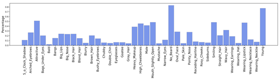 [그림 4] CelebA 데이터셋의 얼굴 특징 속성과 분포
