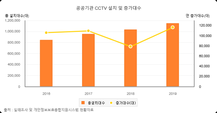 [그림 1] 공공기관 CCTV 설치 및 증가대수