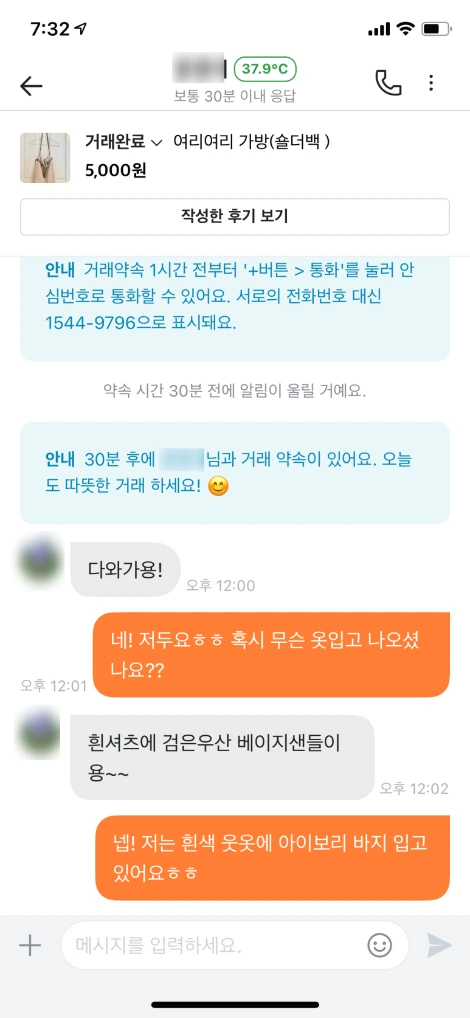 그래서 마침 거래를 하려던 상대방에게 만나기 직전에 옷차림을 물어봤는데요, 상대방은 흔쾌히 자신의 옷차림을 알려주셨어요!!